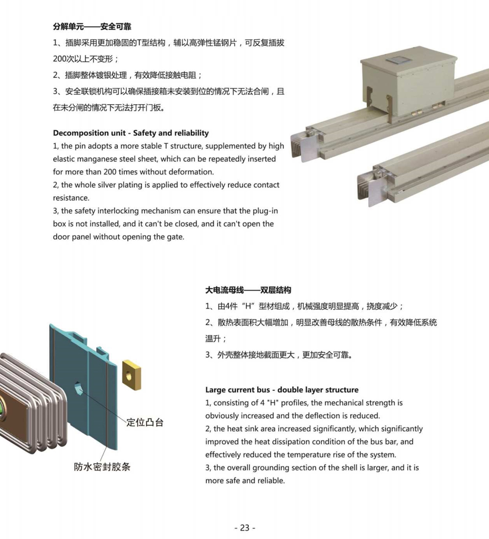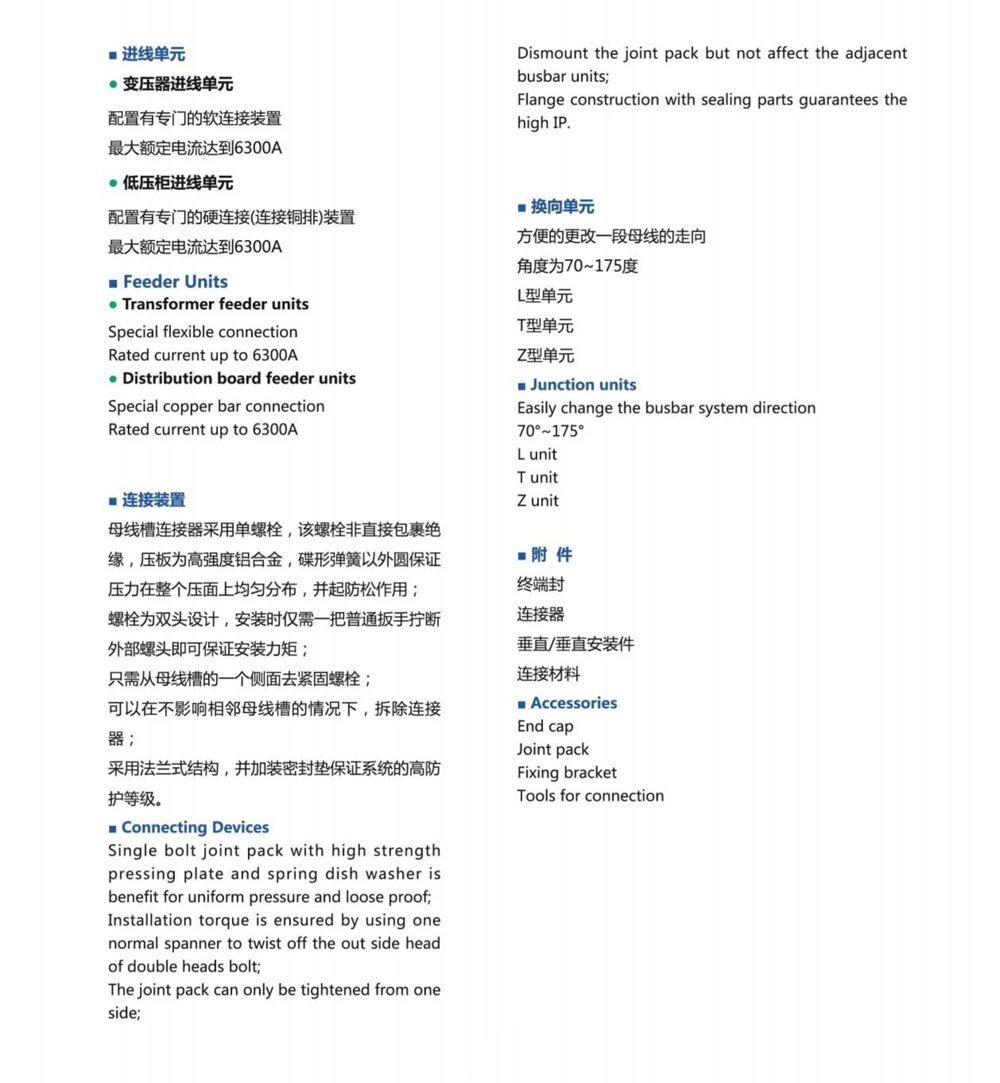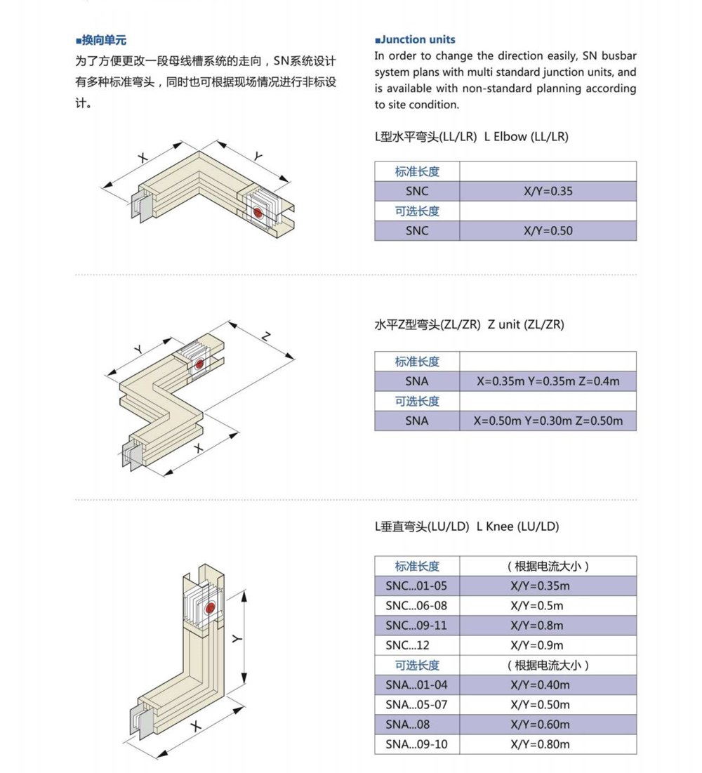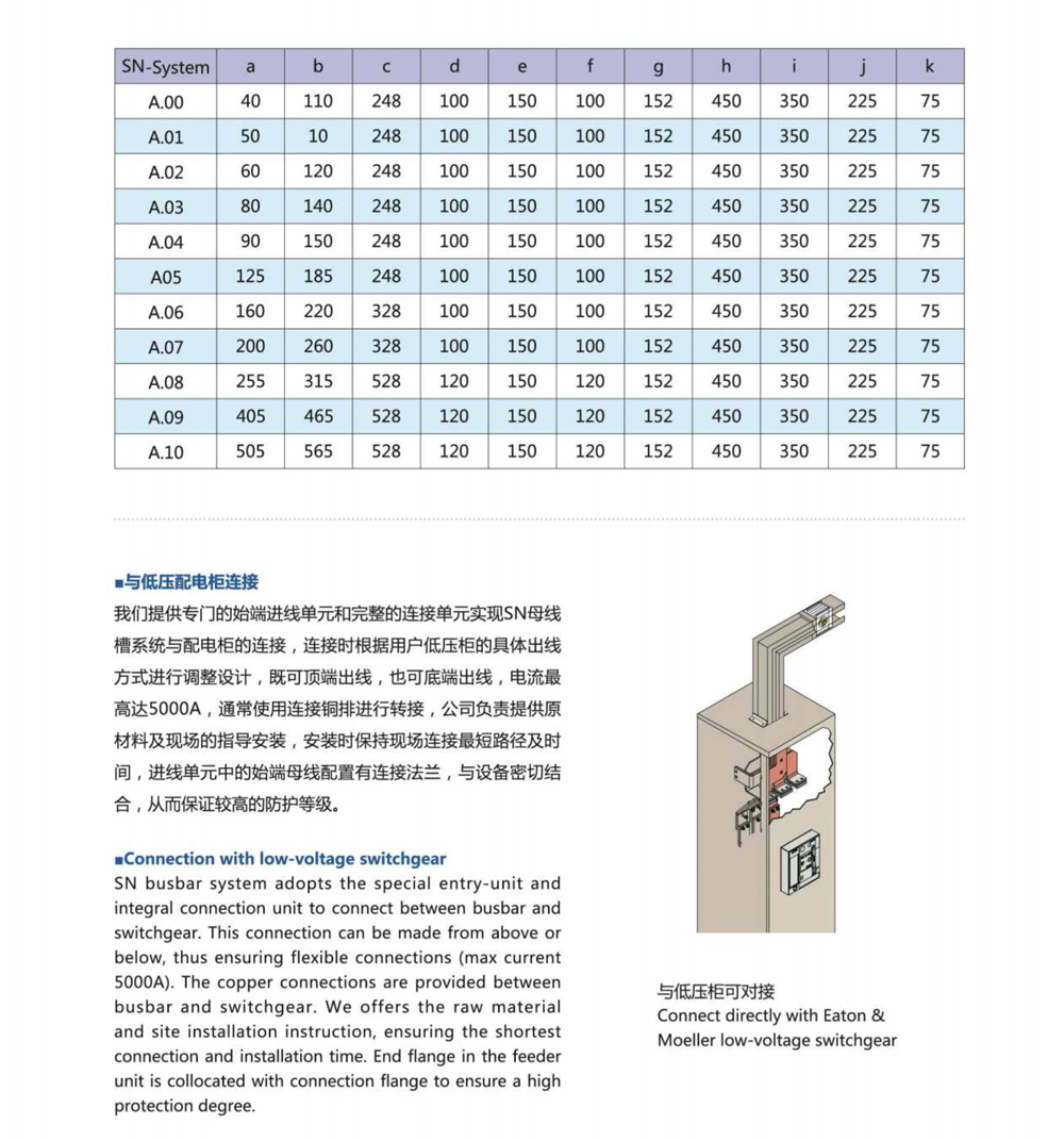 SN母线槽是铝合金外壳密集型母线,符合GB7251和1EC60439标准,主要用于满足客户的各类输、配电需求,该母线技术参数国内领先,结构简单、新颖, .使用方便,运行安全、可靠。该母线包括铜排和铝排两种配置,额定电流250A至6300A,插接箱最大容量1600A , IP54和IP66两种防护等级保证了系统在不同环境条件”下稳定、安全地运行。